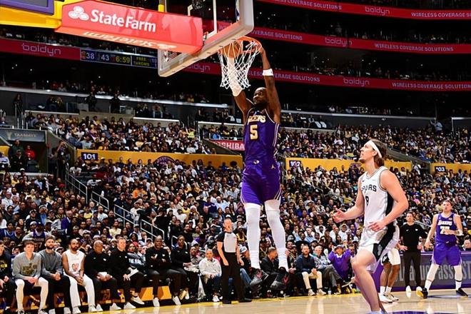 本場比賽中,湖人的先發(fā)中鋒德安德烈-艾頓(DeAndre Ayton)繼續(xù)著自己近期的強勢表現(xiàn)。艾頓全場出場33分07秒,投籃13中9,罰球4中4,得到了22分10籃板1搶斷2蓋帽的兩雙數(shù)據(jù),其中還包括了4個前場籃板,還有3次犯規(guī),正負值為+1。艾頓在進攻端繼續(xù)著自己的出色表現(xiàn),他的內(nèi)線得分能力以及中近距離投籃穩(wěn)定性都相當突出,他的進攻效率依然是非常驚人的。不僅如此,艾頓在前后場籃板爭搶方面的積極性也是肉眼可見的,而且他在防守端也是起到了內(nèi)線支柱的作用并且鎮(zhèn)守住了球隊的內(nèi)線。艾頓在本場比賽中也是將自己各方面的特點發(fā)揮了出來,球隊能夠戰(zhàn)勝實力不俗的對手,也和他的強勢發(fā)揮密切相關(guān)。